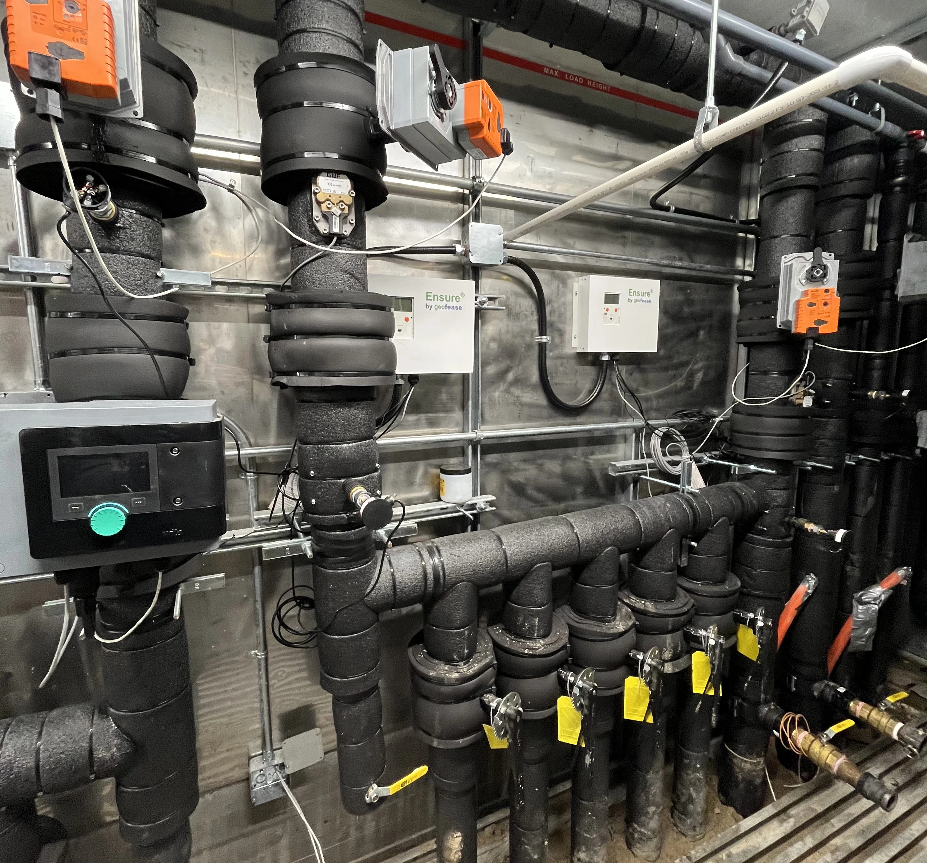 Ensure provides continuous, real-time monitoring of key system parameters, including supply and return temperatures, flow rates and thermal energy transfer. This data is transmitted to the GeoFease platform for analysis, visualization, and performance verification. As new buildings are added to the ambient loop, operating data allows CMU to optimize controls, validate ground heat exchanger capacity, and right-size the district system over time, reducing unnecessary upfront capital costs.