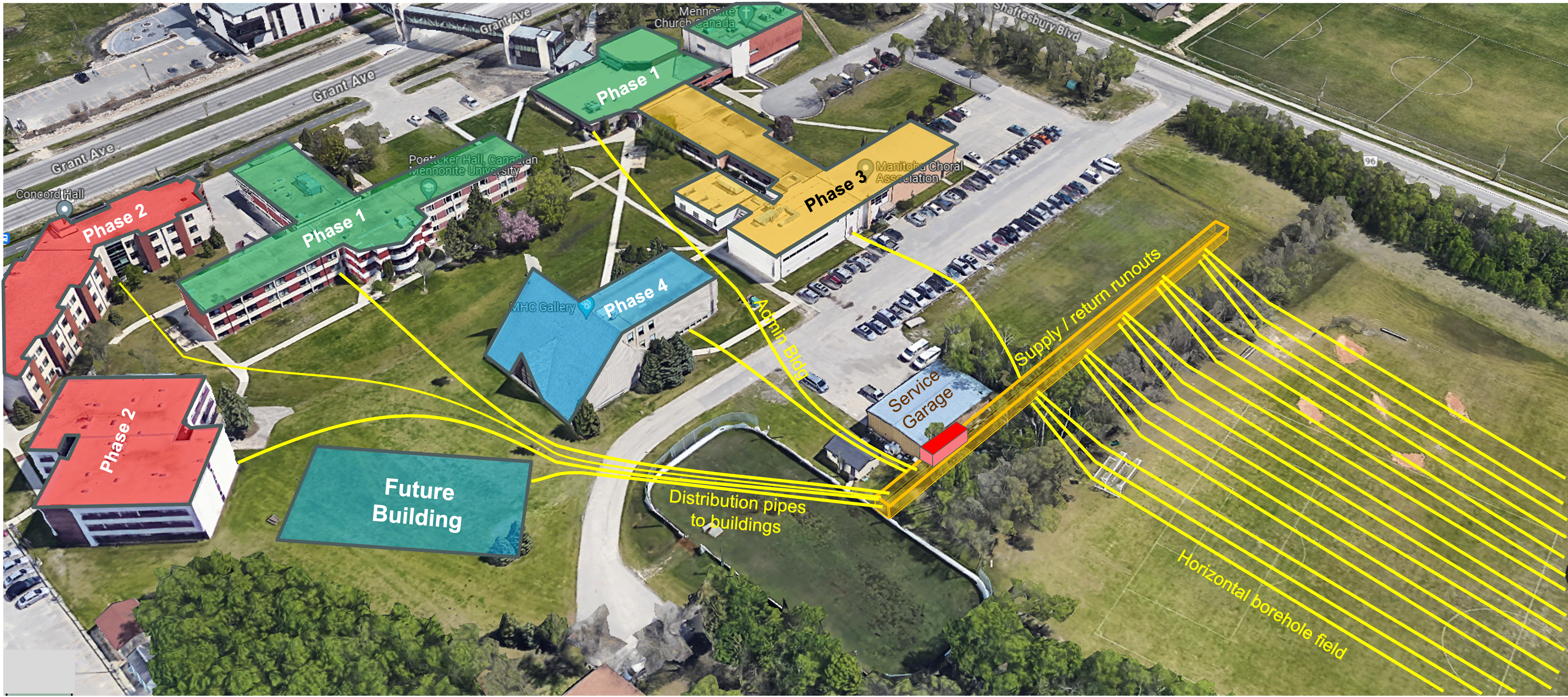 GeoFease has installed its Ensure® monitoring system on Canadian Mennonite University’s (CMU) fifth-generation (5G) district heating and cooling network in Winnipeg, Manitoba. The low-temperature, ambient loop geothermal system enables highly efficient energy sharing between buildings and is designed to reduce carbon emissions while lowering campus energy costs by 30–50% compared to conventional systems.